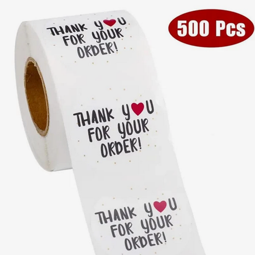 Thank You Stickers-Round Shaped White -500Pcs/Roll
